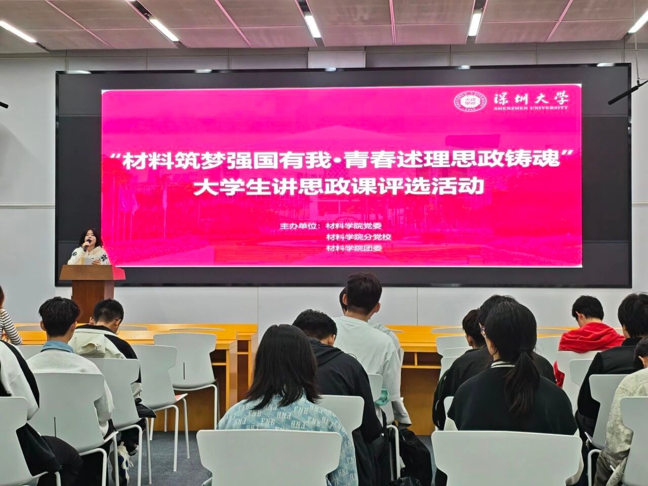 丽湖校区文韬楼236映雪厅举办“材料筑梦强国有我・青春述理思政铸魂”大学生讲思政课展示活动。